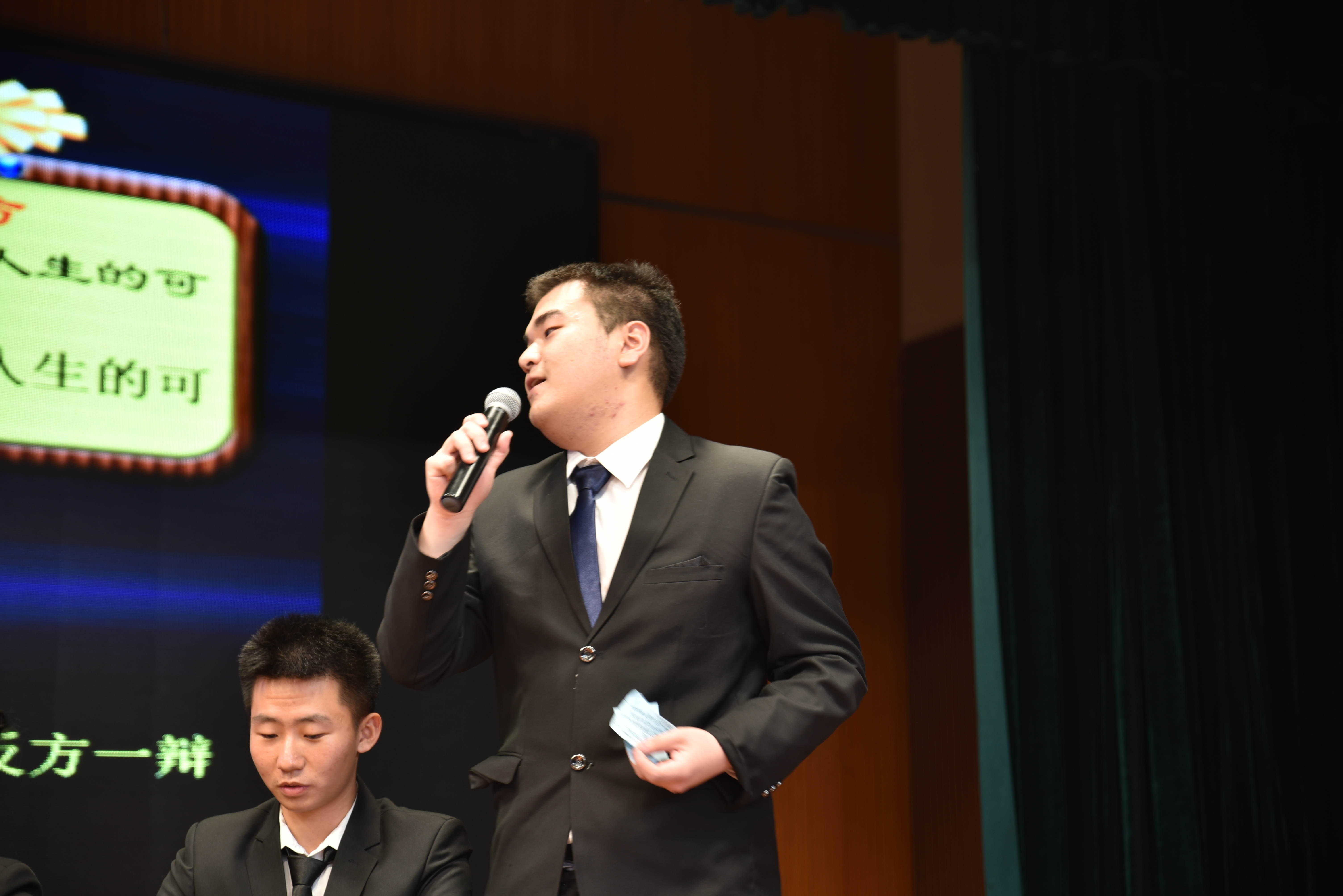 活动过程中,进行了新生辩论赛总决赛。本次比赛采用新颖赛制,双方辩手就辩题展开了激烈深入的讨论。辩手们在立论、攻辩环节中思路清晰,字字珠玑,并围绕十九大展开辩题,使现场气氛迅速升温;在自由辩论环节,双方更是妙语连珠,舌绽莲花,使观众热情高涨;结辩时辩手们语言精简,完美地总结了整场辩论,从国家与人民的角度入手,深刻地阐述了十九大的意义,令人意犹未尽。最终,反方代表队胜利,并获得了团队一等奖。本场辩论赛的最佳辩手为张家硕和吴广栋同学,他们的精彩表现使观众们惊叹佩服。