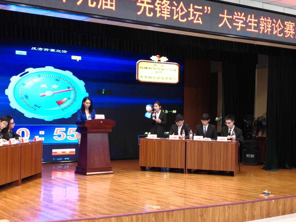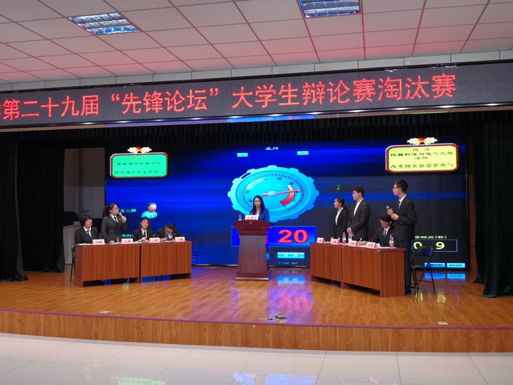 为丰富同学们的文化生活,提高同学们的思辨能力与语言表达能力,365英国上市公司辩论队参加了第二十九届“先锋论坛”老员工辩论赛,于10月20日下午3:20在中心校区田家炳老员工活动中心小礼堂举办的淘汰赛中首战告捷,战胜了新能源与环境公司辩论队。2018级王舒啸、严辰龙、刘苏辉同学,2019级刘航同学参加比赛,仪器科学与电气工程公司党委副书记兼副经理、2018级辅导员周伟老师,部分2018级和2019级同学观看了本场辩论赛。