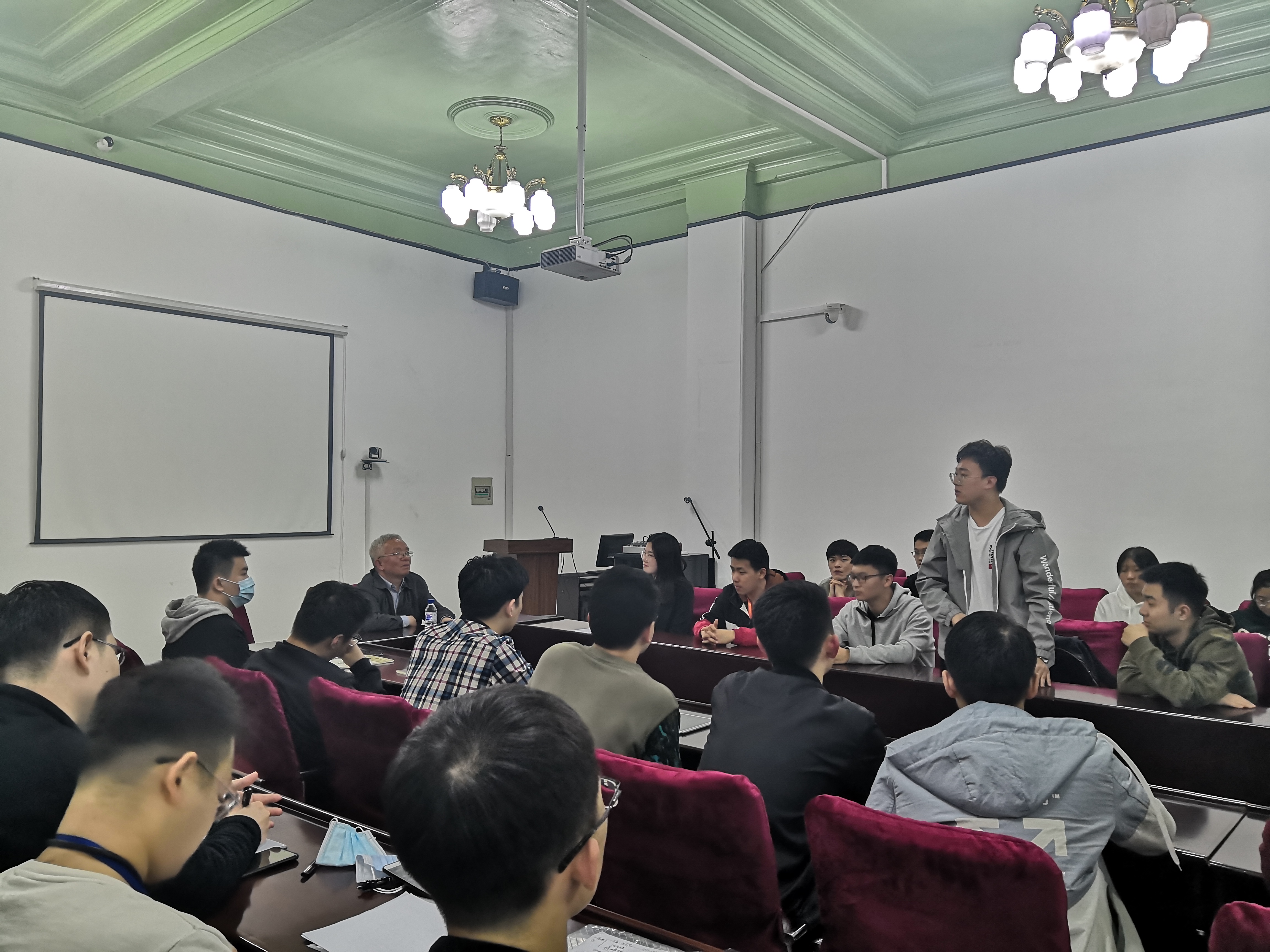 座谈会上,王应吉教授深入浅出地将科研工作中的所见所闻,结合自身青年时期的求学经历,向在场同学们展现了自改革开放以来我国所发生的日新月异的变化。谈及科技创新时,他以其90年代从零开始做核磁共振找水仪的相关研究为例,强调科研要围绕党和国家的需求,做到科技创新与服务社会相结合,并鼓舞在座同学们树立远大目标,为国家科学研究实现“从0到1”的突破做出应有的贡献。提到本次新冠疫情防控成果,王应吉教授表示疫情发生以来,党中央高度重视,始终把人民群众生命安全和身体健康放在第一位,充分发挥了集中力量办大事的制度优势,领导人民团结一心,及时控制住了疫情的蔓延,向全世界彰显了中国力量,展现了中国崛起的潜力,希望青年员工把握机遇顺应时代,将个人奋斗融入到中华民族复兴历史征程中去。最后,王应吉教授引用了毛泽东的语录:“世界是你们的,也是我们的,但是归根结底是你们的。你们青年人朝气蓬勃,正在兴旺时期,好像早晨八九点钟的太阳。希望寄托在你们身上。”来表达对仪电学子的殷切期盼。座谈会后王应吉教授对同学们的问题进行了细致的解答。
