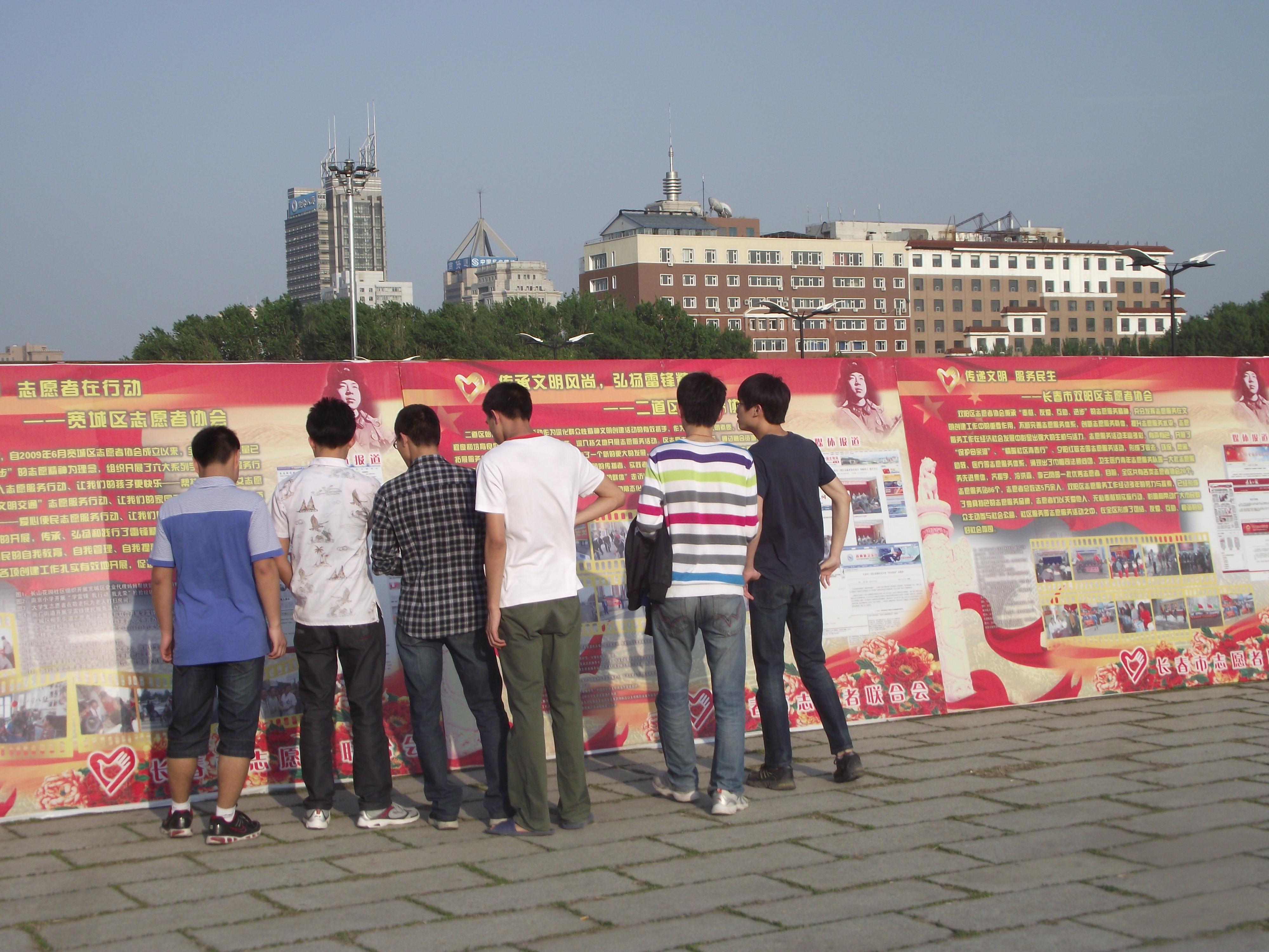 为纪念中国共青团成立90周年,进一步弘扬“奉献、友爱、互助、进步”的志愿服务精神、学习全省各级团组织开展志愿服务活动的先进经验,365英国上市公司团委、员工会于2012年5月20日中午12:00组织主要员工干部前往文化广场参观了由省文明办、省志愿者协会联合举办的《吉林志愿服务大型图片展》。
