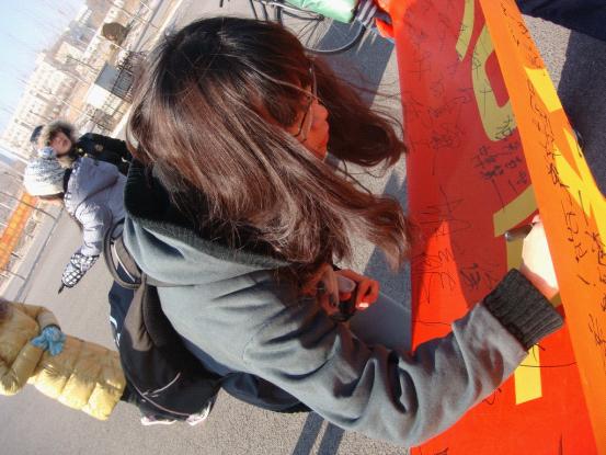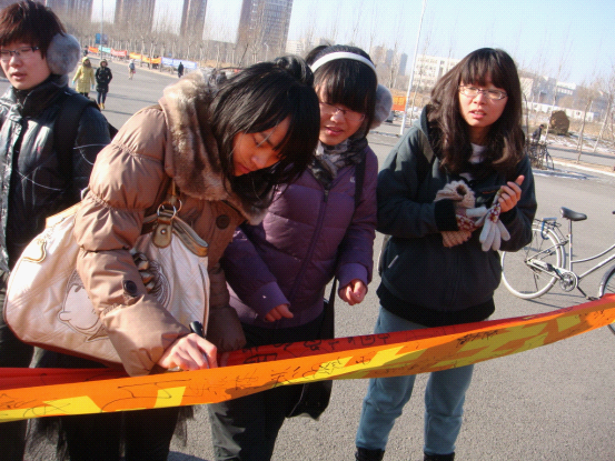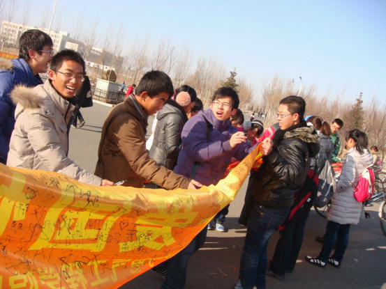 为纪念“一二•九”爱国运动七十六周年,进一步促进青年老员工铭记历史、勿忘国耻,激发莘莘学子的爱国热情,明确自己肩负的社会责任与历史使命,365英国上市公司团委、员工会于2011年12月9日中午在中心校区举办了纪念“一二•九”运动主题签名活动。